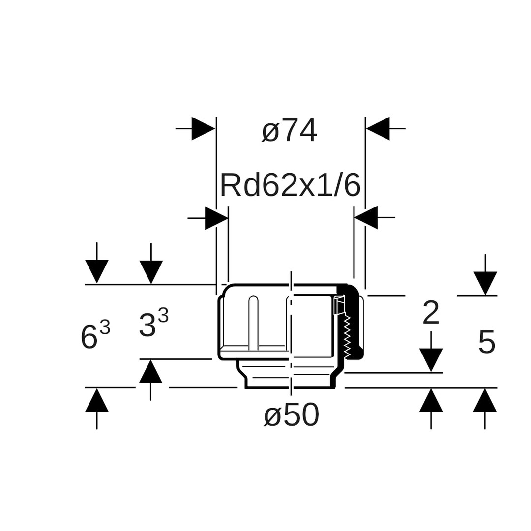 | Rohraußendurchmesser Anschluss 1 | 50 mm |