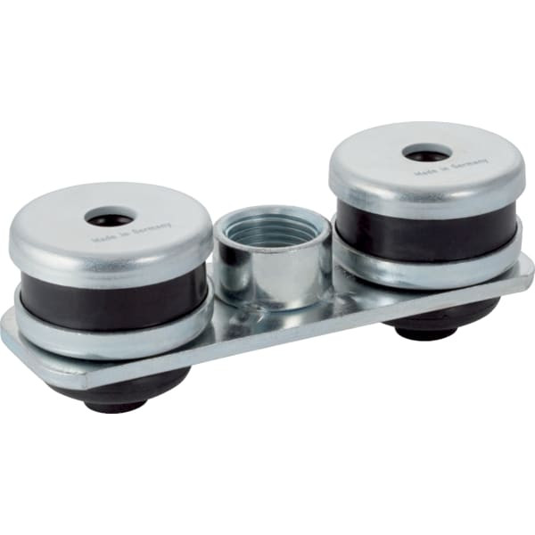 zum Befestigen von Leitungen an Decken und an Wänden, nicht geeignet zur starren Montage, IG, hochschallgedämmt, zwei Befestigungspunkte, bestehend aus 2x Dämmpuffer, 2x Dämmscheiben und Grundplatte