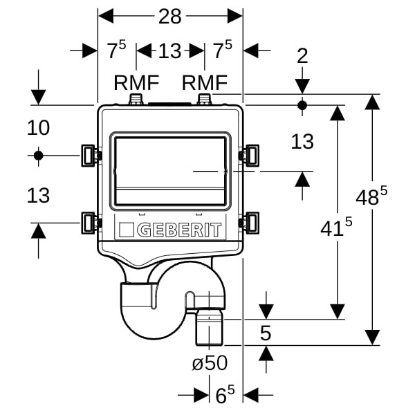 Geberit Hygienespülung HS10 2 Wasseranschlüsse, d= 50mm, DN 40, zur AP-/UP-Montage