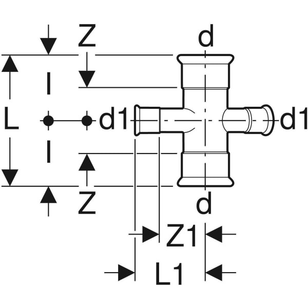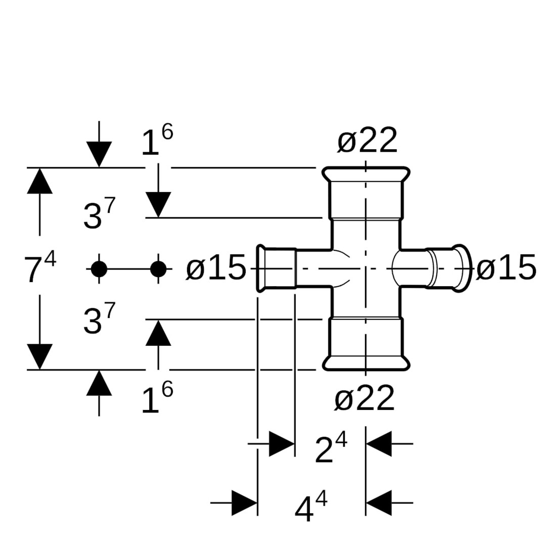 Geberit Kreuzstück Mapress 22 x 15 mm, 30°, reduziert, Kupfer