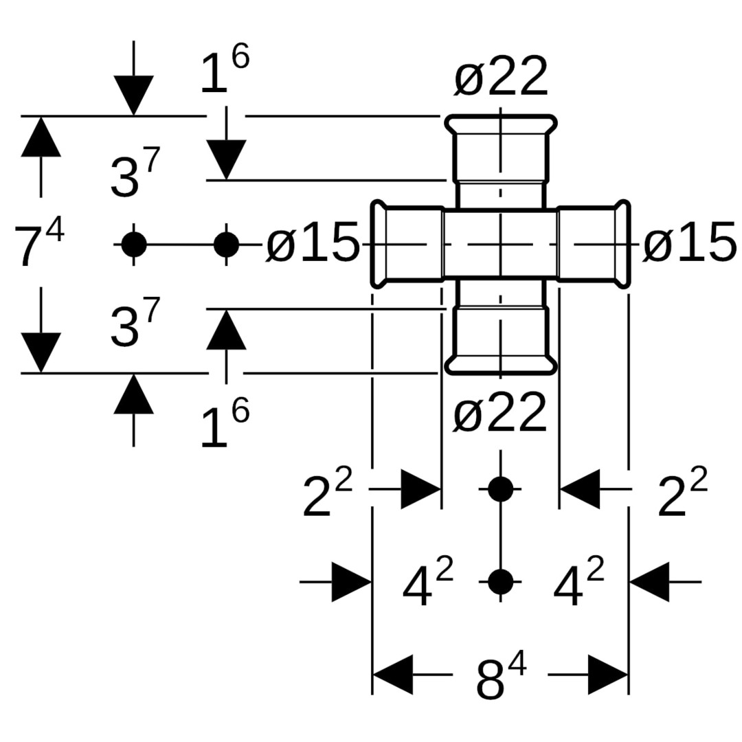Geberit Kreuzstück Mapress C-Stahl Ø 22 x 15 mm, reduziert, außen verzinkt