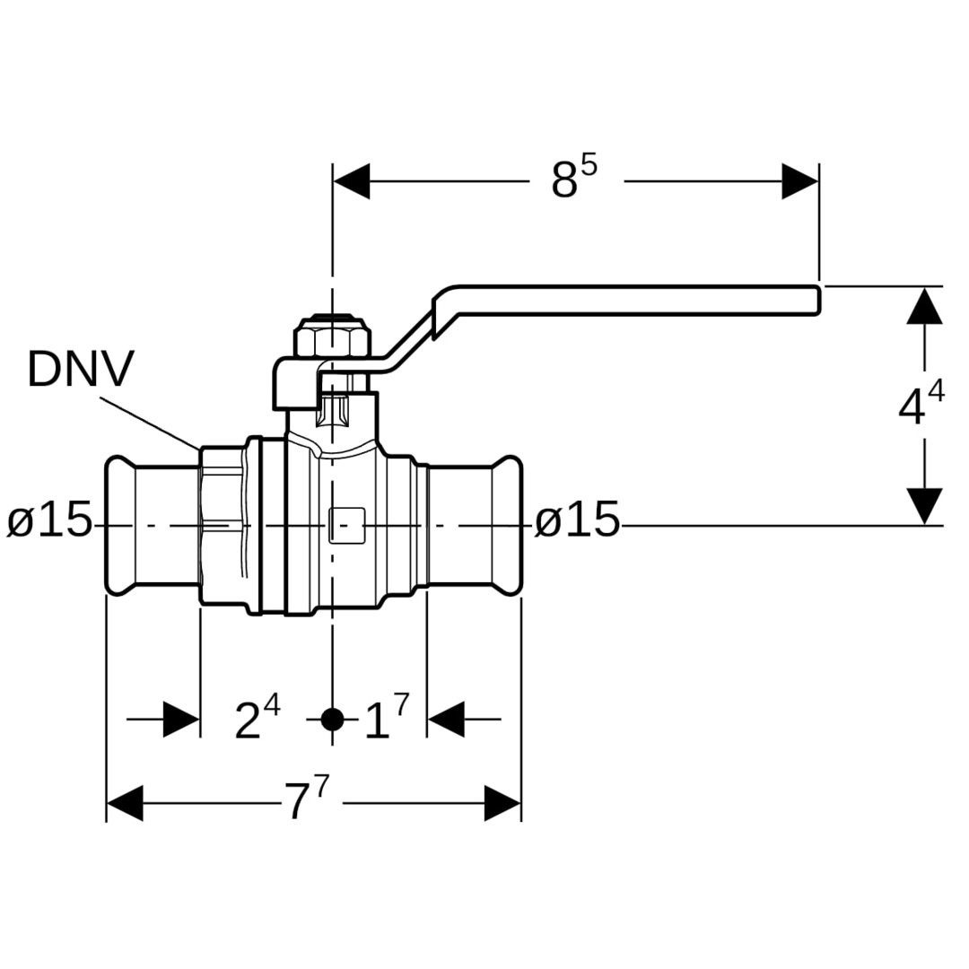 Geberit Kugelhahn Mapress Ø 15 mm, NPW mit Betätigungshebel, Messing