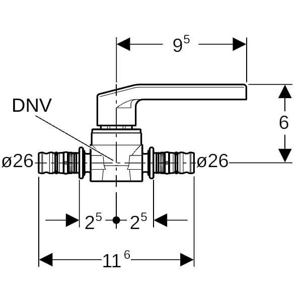 Geberit Kugelhahn Mepla Ø 26 mm, mit Betätigungshebel, Messing