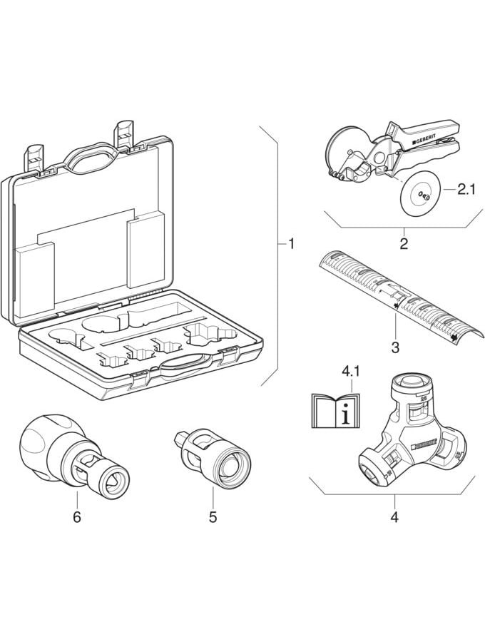 Geberit Montagewerkzeug PushFit 14/16/20/25 mm, mit Markierschablone, in Koffer
