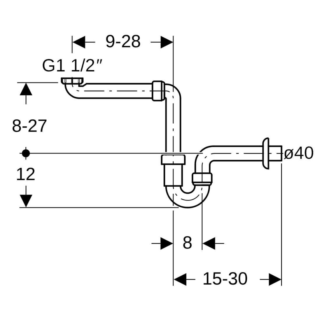 Geberit Rohrbogengeruchsverschluss G 1 1/2 x1 1/4 x 40 mm, Raumsparmodell, Abgang horizontal, weiß