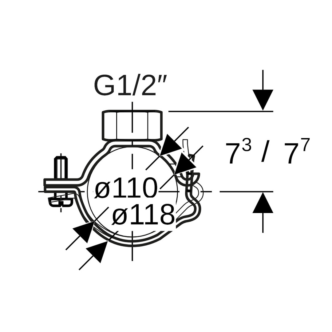 Geberit Rohrschelle DN 100, mit Gewindemuffe G 1/2, verstellbar, verzinkt
