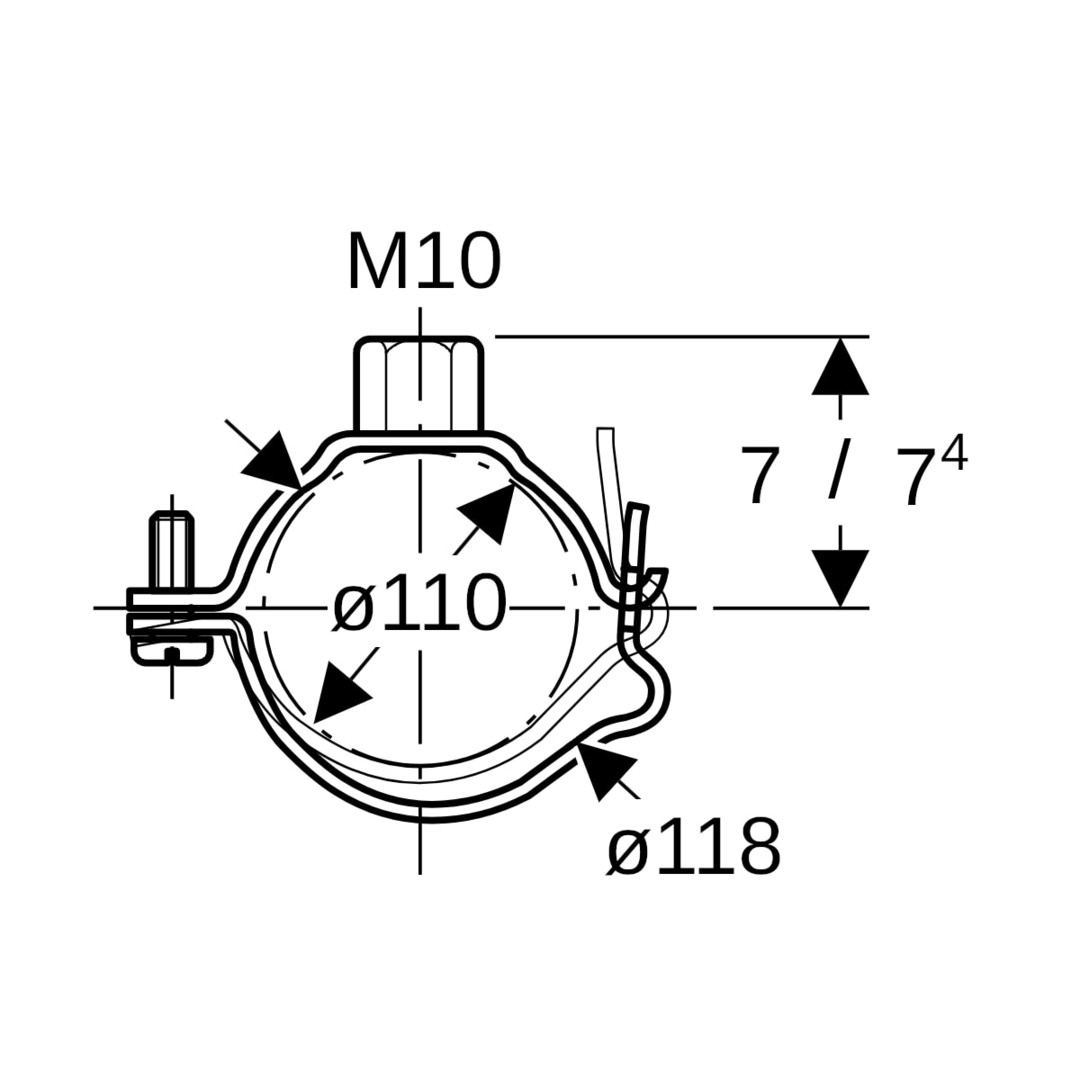 Geberit Rohrschelle DN 100, mit Gewindemuffe M10, verstellbar, verzinkt