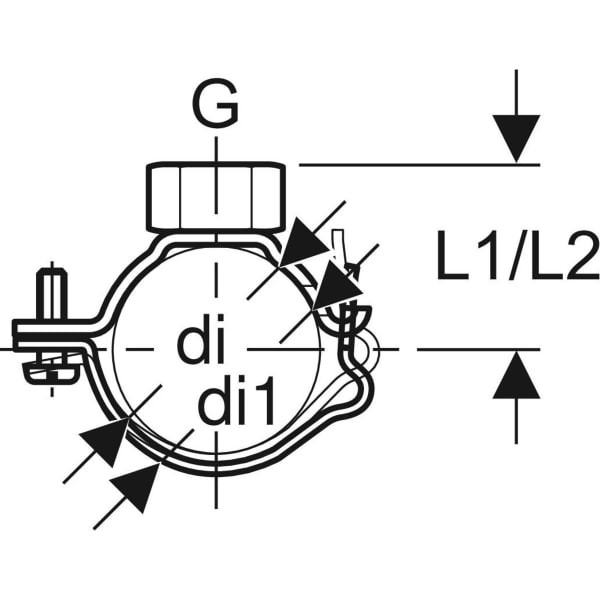 Geberit Rohrschelle DN 40, mit Gewindemuffe G 1/2, verstellbar, verzinkt