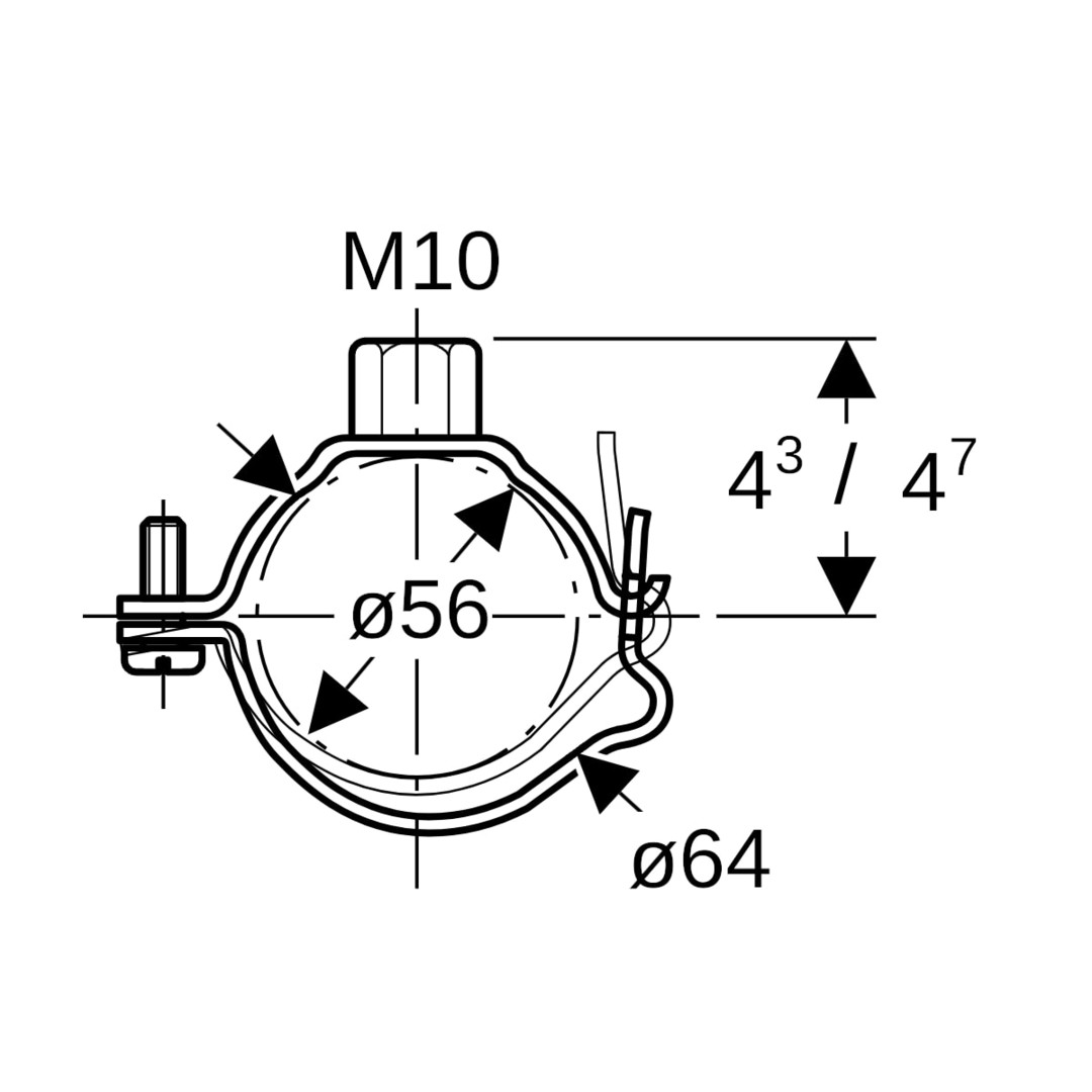 Geberit Rohrschelle DN 56, mit Gewindemuffe M10, verstellbar, verzinkt