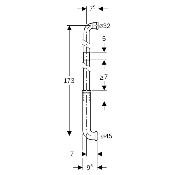 Geberit Spülbogenset mit Aussparungsschale, ausziehbar, 90Grad, 32/45 mm
