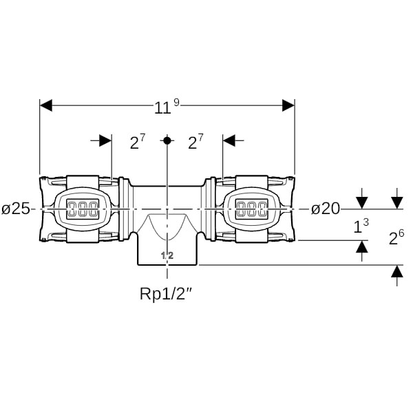 | Größe | DN 20 x Rp 1/2 x DN 20 |