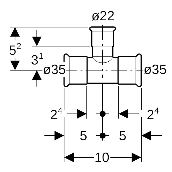 Geberit T-Stück Mapress Ø 35 x 22 x 35 mm, reduziert, Kupfer