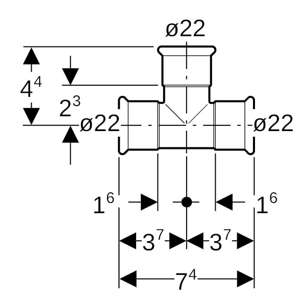 Geberit T-Stück Mapress C-Stahl Ø 22 mm, egal, außen verzinkt