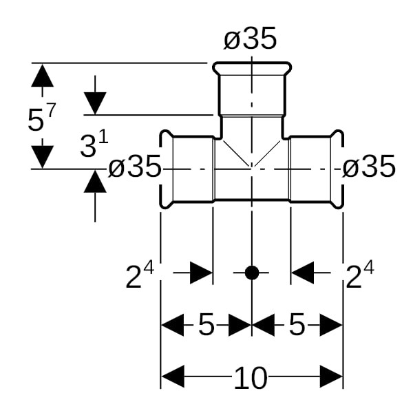 Geberit T-Stück Mapress C-Stahl Ø 35 mm, egal, außen verzinkt