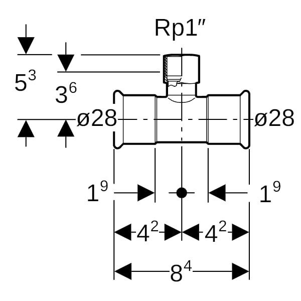 Geberit T-Stück Mapress Therm DN 25, Durchmesser 28 mm, 1", Länge 8,4 cm, mit Innengewinde