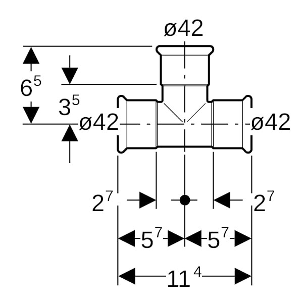 Geberit T-Stück Mapress Therm DN 40, Durchmesser 42 mm, Länge 11,4 cm, 90Grad, egal