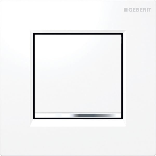 Geberit Typ 20 Betätigungsplatte, eckig, für Urinalsteuerung mit pneumatischer Spülauslösung: Platte, Taste: weiß-alpin / glänzend, Designstreifen: chrom / glänzend