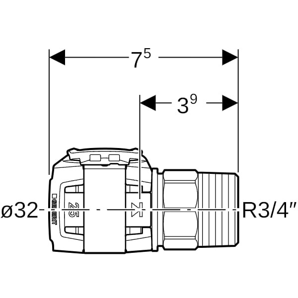 Geberit Übergang FlowFit Ø 32 mm, R 3/4, DN 25/20, mit Außengewinde