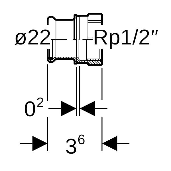 | Rohraußendurchmesser Anschluss 1 | 22 mm |