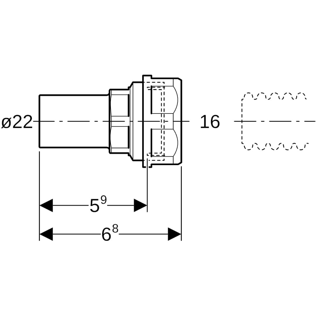 Geberit Übergang Mapress DN 16 x 22 mm, mit Klemmringverschraubung für Wellrohre, NPW, Messing