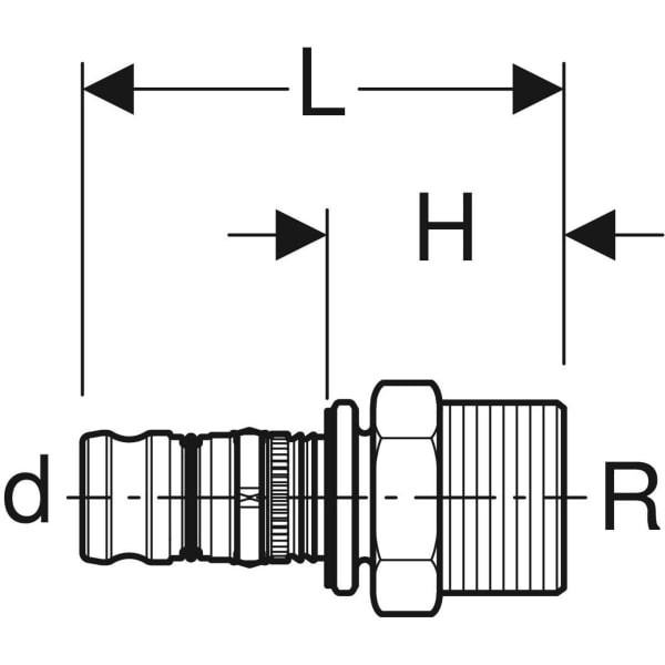 Geberit Übergang Mepla Ø 20 mm x R 3/4, mit AG, Rotguss