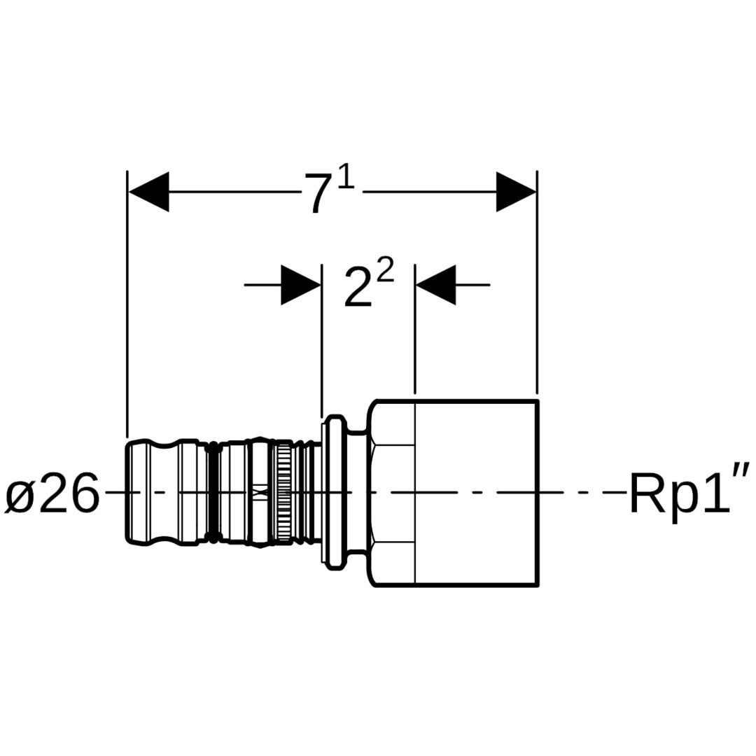 Geberit Übergang Mepla Ø 26 mm x Rp 1, mit IG, Rotguss