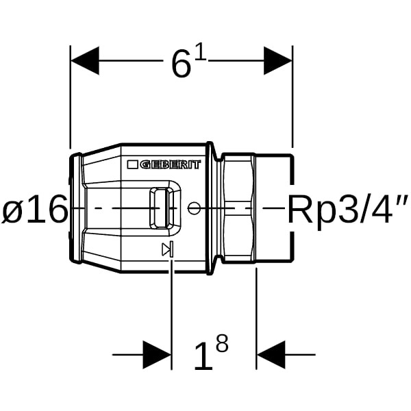 Geberit Übergang PushFit Ø 16 mm x Rp 3/4, mit Innengewinde, Rotguss