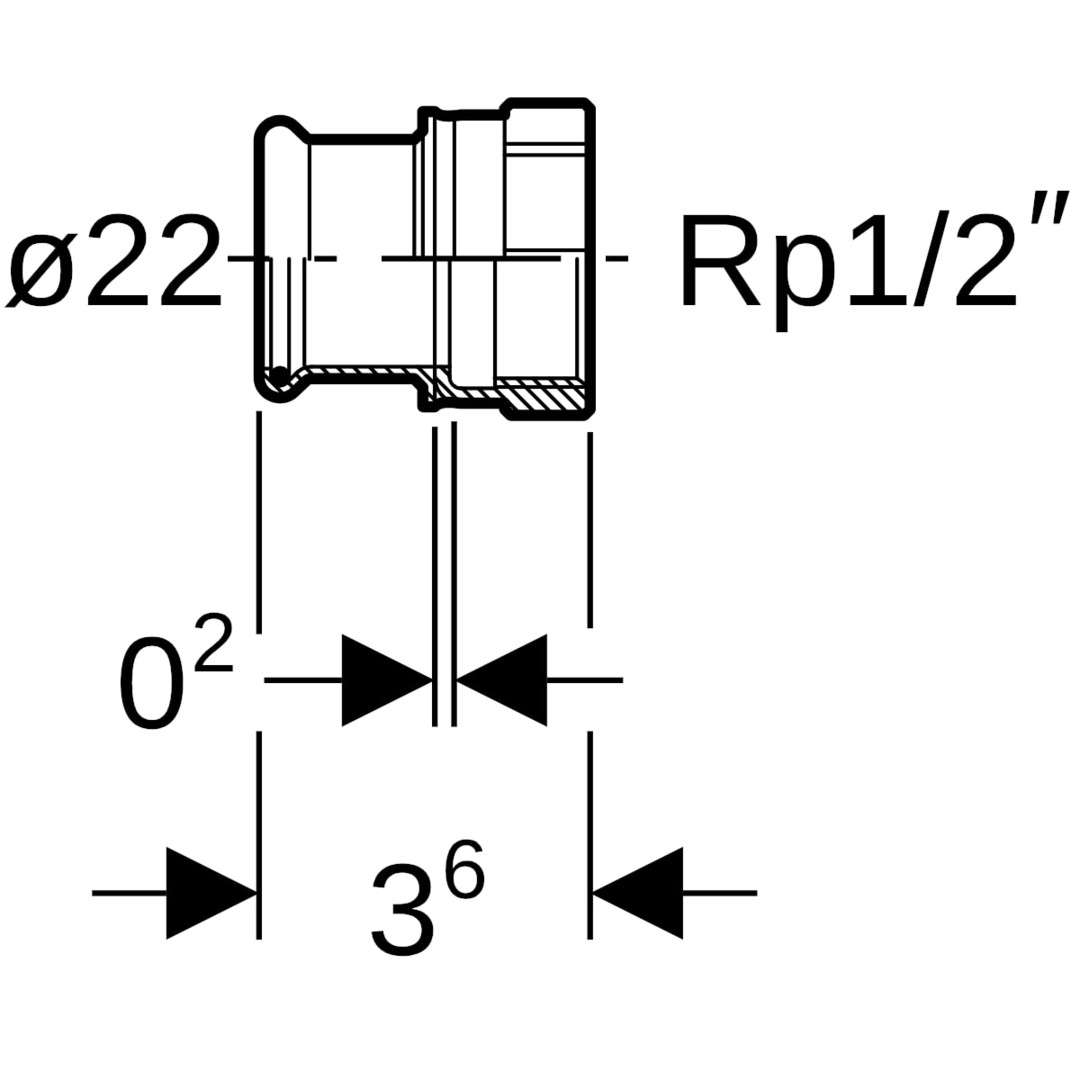Geberit Übergangsmuffe Mapress Ø 22 mm x Rp 1/2, mit Innengewinde, Edelstahl