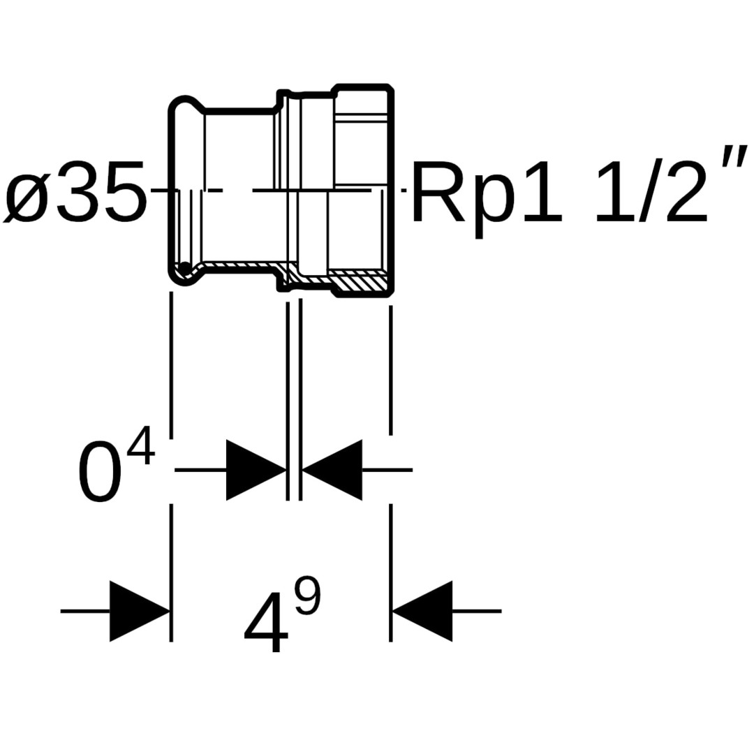 Geberit Übergangsmuffe Mapress Ø 35 mm x Rp 1 1/2, mit Innengewinde, Edelstahl