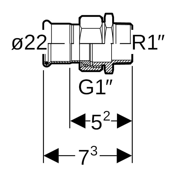 Geberit Übergangsverschraubung Mapress Therm DN 20/25, Durchmesser 22 mm, R 1", G 1", mit Außengewinde