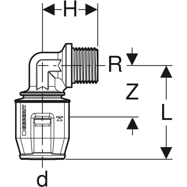 Geberit Übergangswinkel PushFit Ø 20 mm x Rp 1/2, 90Grad, mit Außengewinde, Messing