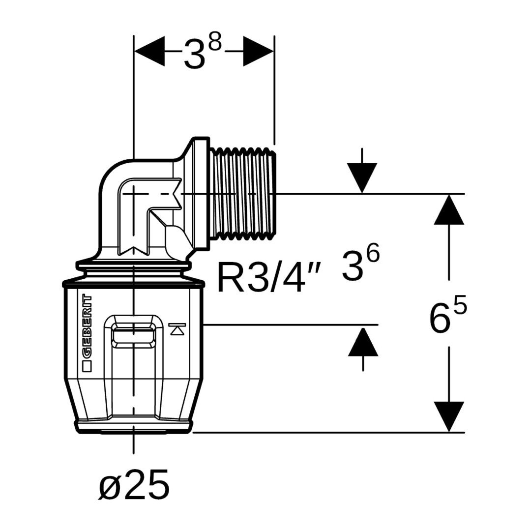 Geberit Übergangswinkel PushFit Ø 25 mm x Rp 3/4, 90Grad, mit Außengewinde, Messing