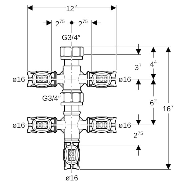 Geberit Verteilerspinne mit FlowFit Pressanschlüssen, 5-fach