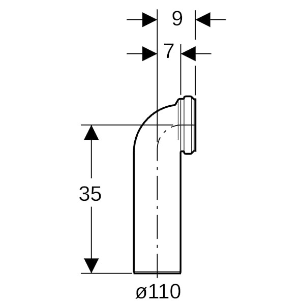 Geberit WC-Ablaufbogen PP, Abgang waagerecht, 90°, 110 mm, weiß
