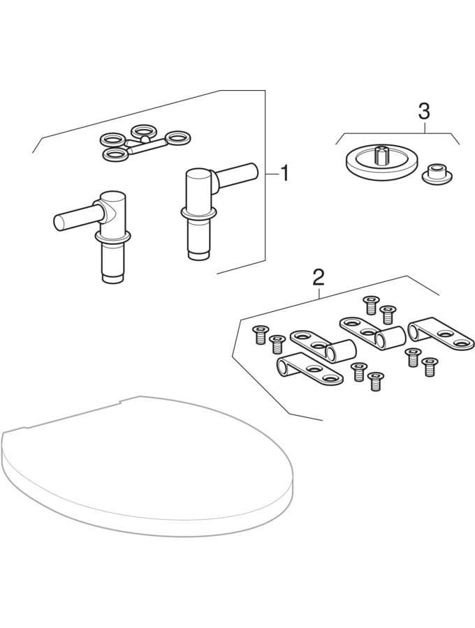 | Scharnierfussbefestigung am Sitz mit | in den Deckel gesteckte Stifte |