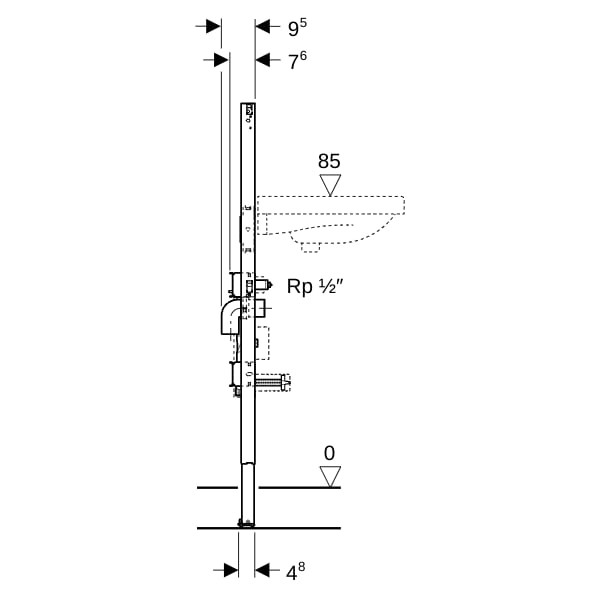 mit UP-Kugelhahn und Anschluss T-Stück, für Metall- und Holzständerwände, für Geberit Duofix Systemwände, zum Einbau in teil- oder raumhohe Vorwände, zum Einbau in raumhohe Trennwände, für Fußbodenaufbauten 0–25 cm, zum Einbau von Messkapseln mit Gewinde KOAX G 2", Breite 50 cm