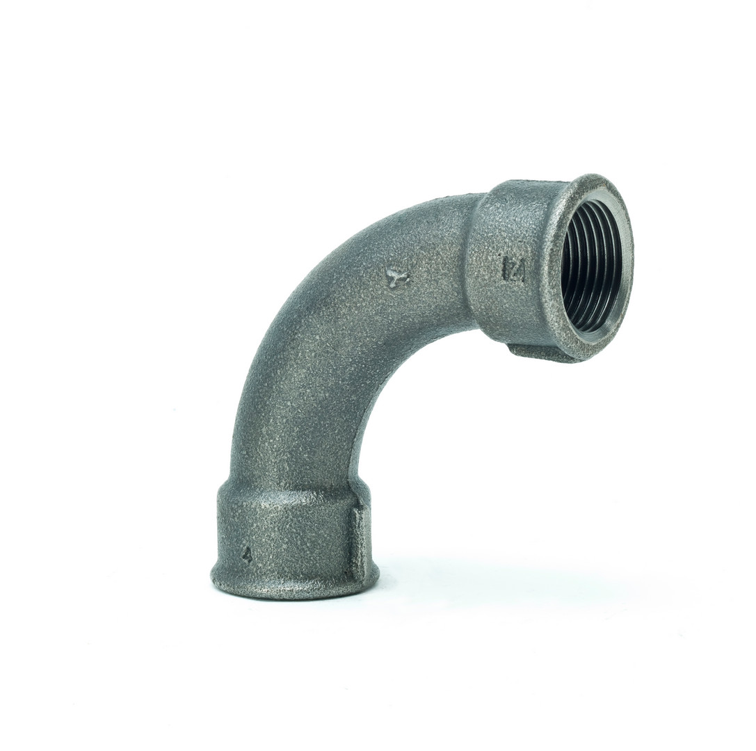 Gebo Gewindefittings aus Temperguss Langer Bogen 90 - 3/8" - I/I - schwarz
