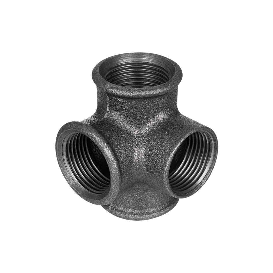Gebo Gewindefittings aus Temperguss T-Verteiler - 1/2" - I/I/I/I - schwarz