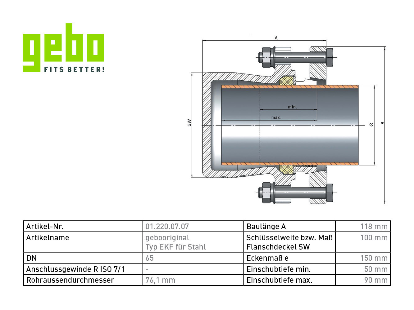 Gebo Verschraubung EKF Serie 220 2 1/2"/76,1 mm, für Stahlrohr