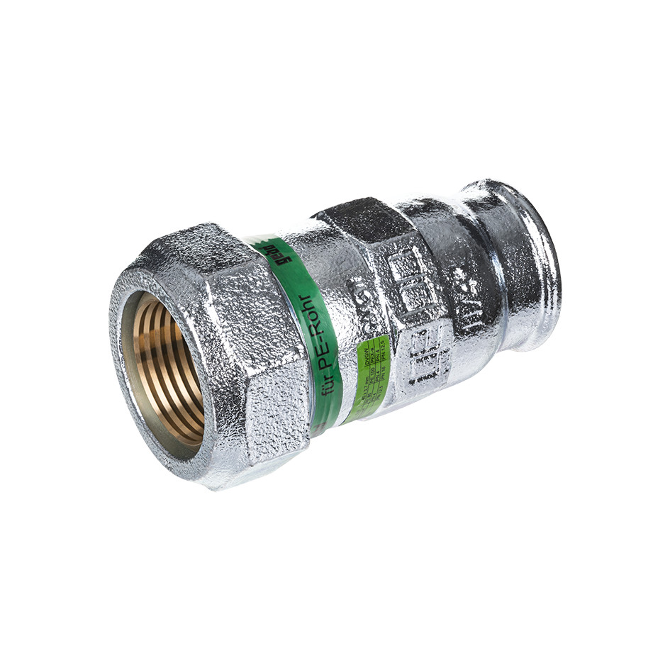 Temperguss-Klemmverbinder, mit IG, für PE-Rohr: PE80, PE100, PE-Xa-Rohr nach DVGW-Arbeitsblatt GW 355 A2/A3 DIN 8074/75 und DIN 16893, 20-63 mm, Medien sind Wasser, Gas und Druckluft, Druckstufen bei Wasser PE80 und PE-Xa PN 12,5, PE100 PN 16, bei Gas PE80, PE100 und Pe-Xa PN 4 und bei Druckluft PE80, PE-Xa PN 10, PE100 PN 12,5, Prüfungen bei Wasser DIN 8076/DIN EN 10284, DVGW-Reg.-Nr. CW-7511CP0631, bei Gas DVGW Arbeitsblatt G 5600-1, DVGW-Reg.-Nr.: DG-7521CP0412, der Einsatz von Stützhülsen ist notwendig
