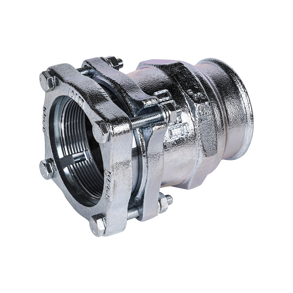 Temperguss-Klemmverbinder mit IG für Stahlrohr, DIN EN 10255 und DIN EN 10220 Reihe 1, Medien sind Wasser und Gas (außerhalb von Gebäuden), Druckluft und Heizöl bis 2", Temperaturen bei Wasser bis 25 °C, Heizungswasser bis 80 °C, Gas -20 bis +60 °C, bei Öl 40 °C, Druckstufen für Wasser PN 16, für Gas PN 5, Druckluft PN 10 und VdS PN 16, Prüfungen für Wasser nach DVGW W 534, DVGW-Reg.-Nr. DW-8511AU2217 und für Gas DIN 3387-1, DVGW-Nr. NG-4502AP1491, VdS-geprüft (Feuerlöschleitungen)