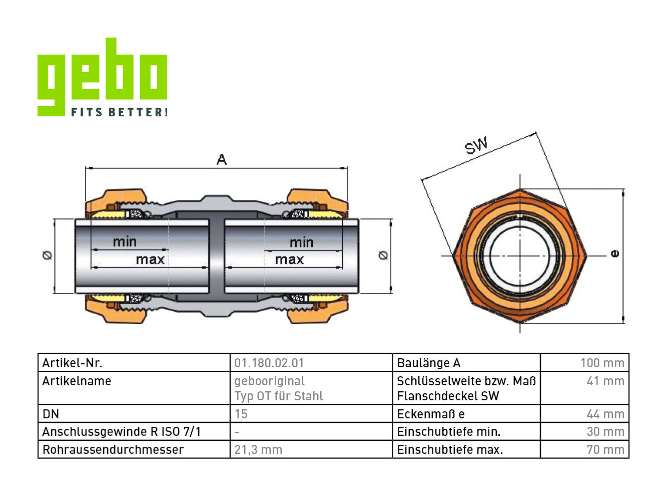 Gebo Verschraubung OT-Serie 180 HTB 1/2"/21,3 mm, für Stahlrohr
