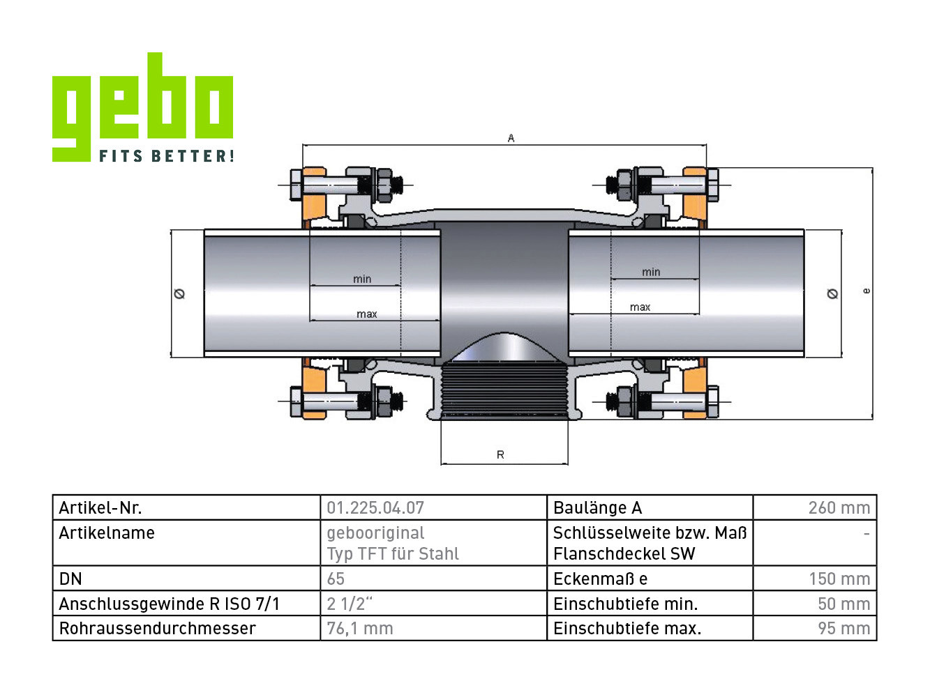 Gebo Verschraubung TFT-Serie 225 HTB 76,1 mm x 76,1 mm x 2 1/2", für Stahlrohr