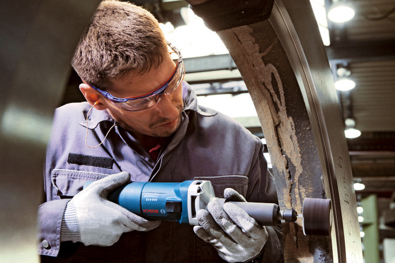 Geradschleifer GGS 8 CE, Der kabelgebundene GGS 8 CE Professional aus der Geradschleifer-Klasse ermöglicht einzigartig kraftvolles Schleifen von Oberflächen. Sein 750-Watt-Motor mit Sanftanlauf gewährleistet einen zügigen Arbeitsfortschritt. Dank seines hohen Drehmoments und des handlichen Designs ist der Schleifer ideal für den Oberflächen-Einsatz mit Fächerschleiftellern, Bürsten und weiterem Zubehör. KickBack Control sorgt für erhöhten Anwenderschutz. Dieses Elektrowerkzeug wurde zum Schleifen von Metall konzipiert. Der GGS 8 CE Professional bietet außerdem Merkmale wie konstante Drehzahl, direkte Motorkühlung, Überlastschutz und Drehzahlvorwahl. Einmaulschlüssel 13 mm (ET-Nr. 3 607 950 025). Einmaulschlüssel 19 mm (ET-Nr. 3 607 950 024). Spannzange mit Spannmutter 6 mm (2 608 570 137)
