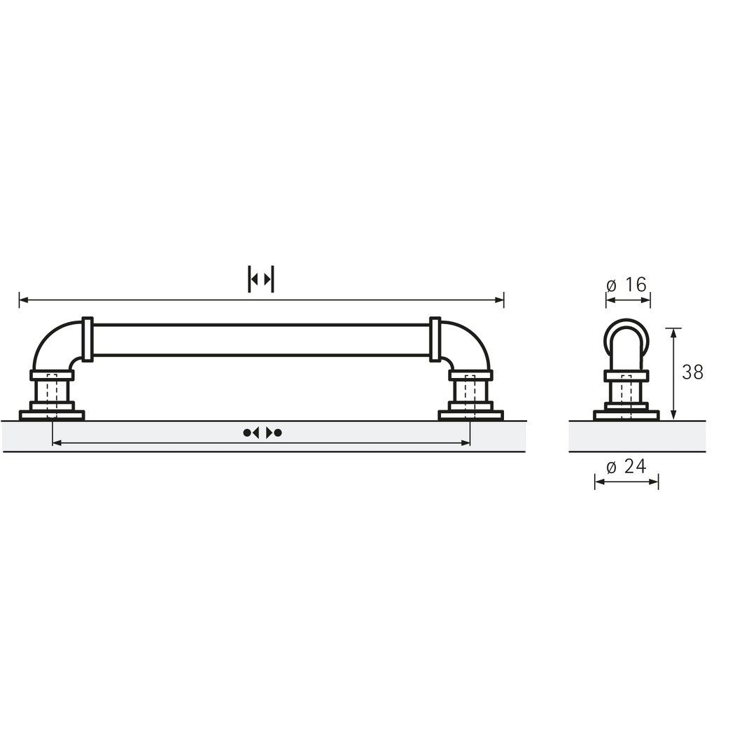 Griff Ogulin, Bohrabstand 128 mm, L 152 mm, H 38 mm, ø 16 mm, Zinn Optik antik