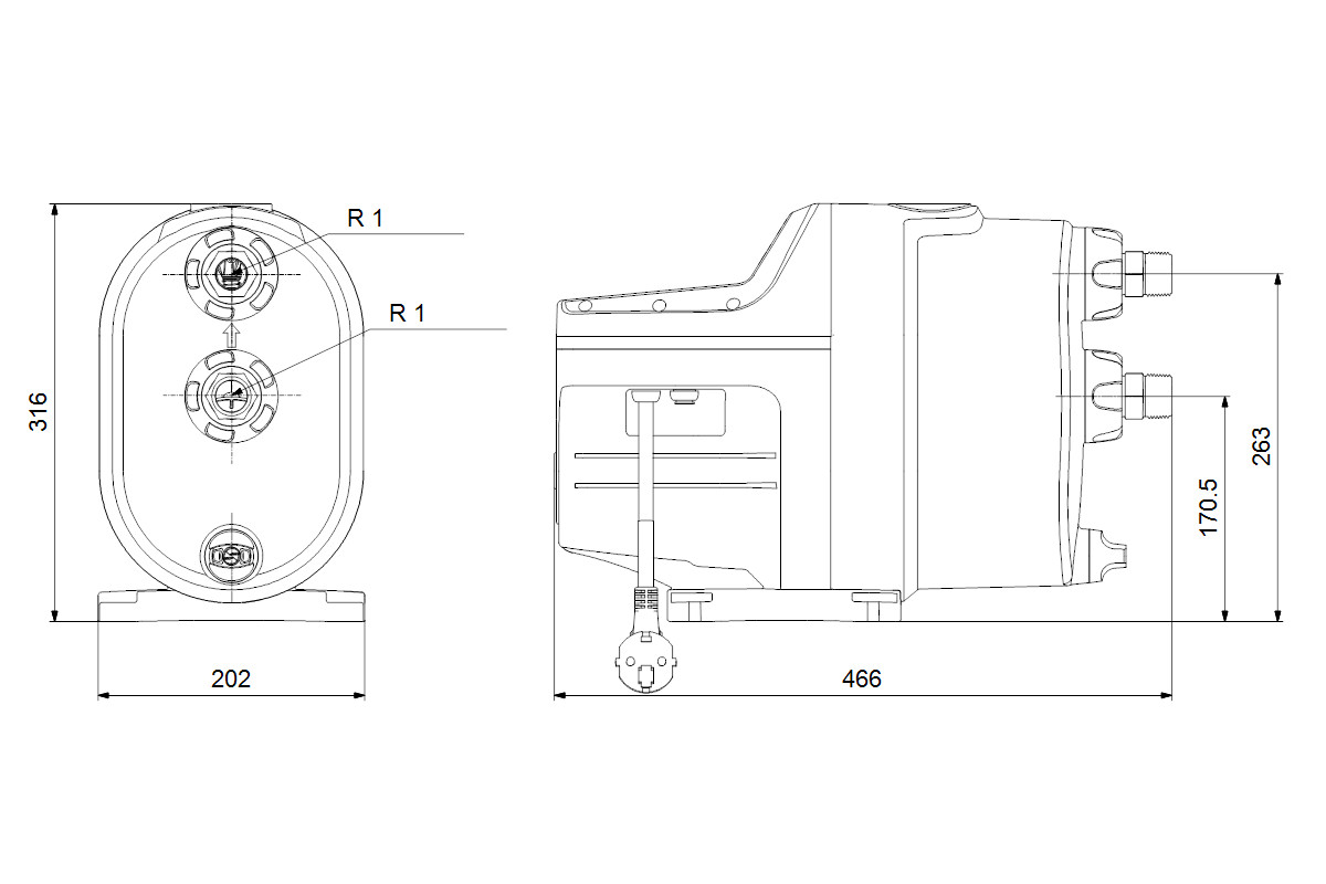 Nennbetriebspunkt 5,3 cbm/h bei 25 m, max. Förderhöhe 52 mWS, max. Ansaughöhe 8 m, Anschlussspannung 1 x 230 V, 50 Hz, aufgenommene Leistung P 1 1200 W, Netzkabel 1,5 m mit Stecker, Schutzklasse X4D (Spritzwasser), max. Umgebungstemperatur +55 °C