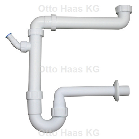 mit höhenverstellbarem Tauchrohr, mit einem Kombi-Geräteanschluss 3/4" und 1", komplett mit allen Dichtungen und Rosette und Verschlussstopfen, einzeln im Polybeutel verpackt, nach DIN EN 274