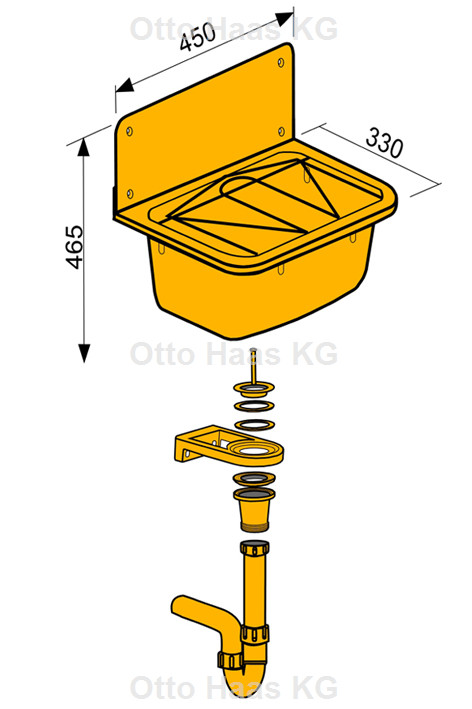 HAAS Universal-Ausgussbecken Adrian 450 x 465 x 330 mm, satiniert, mit Rost und Siphon, Edelstahl