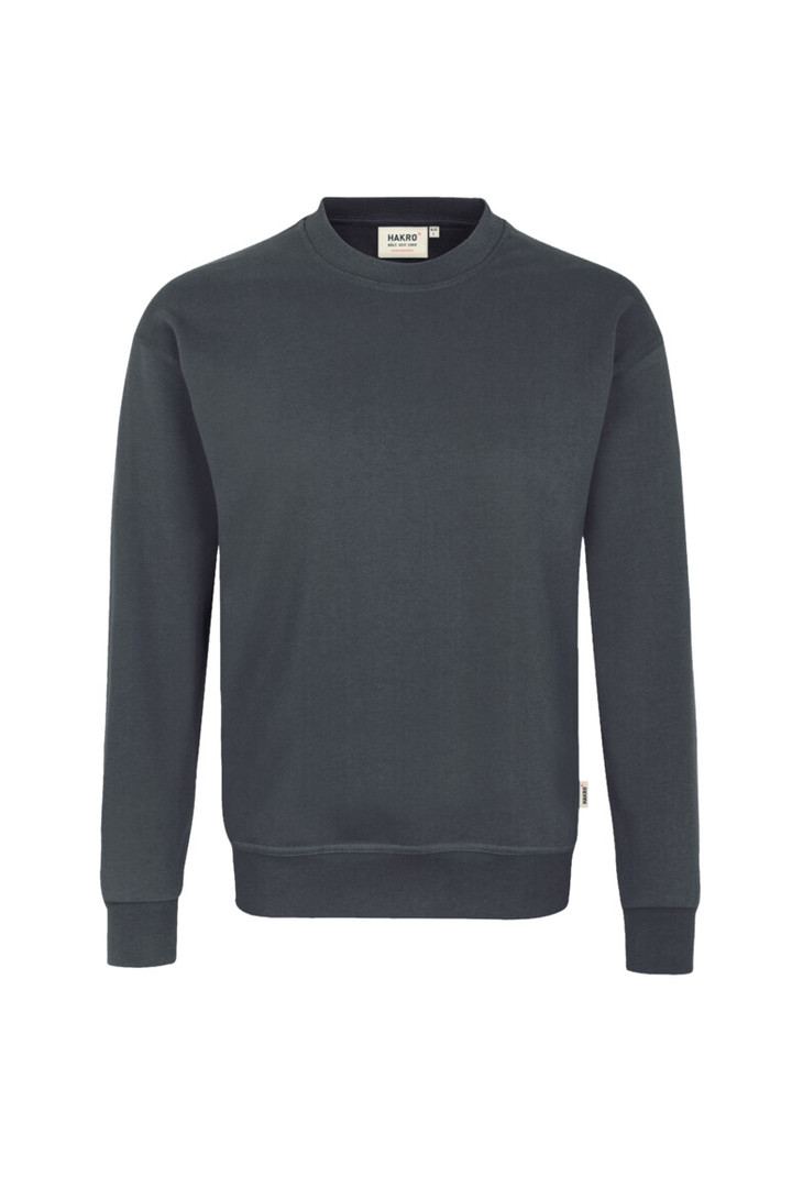 Besonders strapazierfähiges Sweatshirt mit rundem Halsausschnitt, formstabilen Bündchen mit LYCRA®-Anteil, nicht angerauter Innenseite (French-Terry) und Nackenband. Leasingkoller zur einfachen Kennzeichnung in der gewerblichen Wäscherei und Aufhängebänder im Saum. Hergestellt aus weicher, besonders pflegeleichter und funktioneller Maschenware aus dem HAKRO Performance-Materialmix Mikralinar®. Gewebtes HAKRO Necklabel aus hochwertigem Kettsatin mit weichen, ultraschallgeschnittenen Bandkanten für höchsten Tragekomfort und gewebtes HAKRO Flaglabel an der linken Seitennaht.