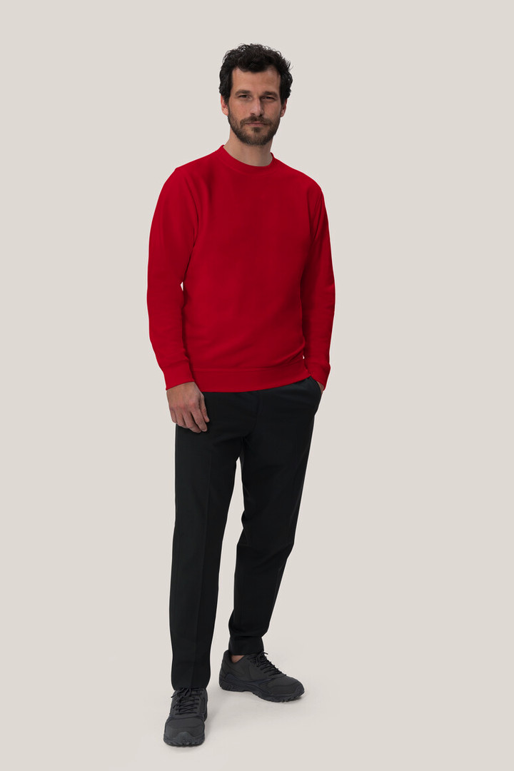 Besonders strapazierfähiges Sweatshirt mit rundem Halsausschnitt, formstabilen Bündchen mit LYCRA®-Anteil, nicht angerauter Innenseite (French-Terry) und Nackenband. Leasingkoller zur einfachen Kennzeichnung in der gewerblichen Wäscherei und Aufhängebänder im Saum. Hergestellt aus weicher, besonders pflegeleichter und funktioneller Maschenware aus dem HAKRO Performance-Materialmix Mikralinar®. Gewebtes HAKRO Necklabel aus hochwertigem Kettsatin mit weichen, ultraschallgeschnittenen Bandkanten für höchsten Tragekomfort und gewebtes HAKRO Flaglabel an der linken Seitennaht.